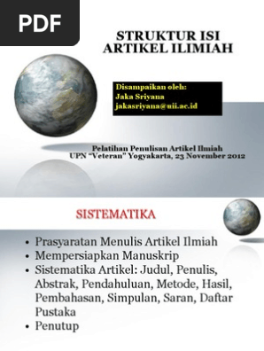 Jelaskan Format Penyampaian Artikel Ilmiah - Kutipan Format Cara Penulisan Contoh Fungsi Tujuan - Selanjutnya, kami mohon bapak/ibu berkenan mereview artikel terlampir dalam waktu tidak lebih dari.. Artikel ilmiah merupakan laporan hasil penelitian yang ditulis sesuai kaidah akademik. Jika artikel itu ditujukan untuk orang awam dan dimuatkan pada surat kabar atau majalah umum, biasanya penyampaiannya adalah secara umum dan bukan berbentuk ilmiah. Format penulisan artikel ilmiah artikel ilmiah penelitian •. Artikel ilmiah sebagai salah satu bentuk. Unsur penting dalam artikel ilmiah • alur pikir ilmiah • sistematika penulisan • penggunaan bahasa yang benar.