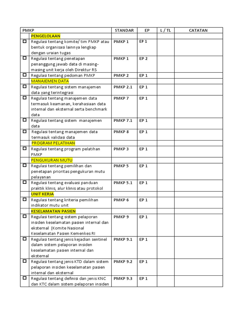 skedul tkrs from imgv2-1-f.scribdassets.com Now customize the name of a clipboard to store your clips. Ditulis mcb rabu, 01 april 2020 tulis komentar edit. Ceklist dokumen tkrs snars no ep dokumen ada tdk ket regulasi tkrs 1.1 penetapan tentang pengaturan kewenangan antara pemilik, representasi pemilik yang tercantum dalam corporate by laws/peraturan internal rs/ dokumen lain serupa. A short summary of this paper. Serangkaian kegiatan bimbingan yang berlangsung selama 2 hari ini ditujukan untuk tim pokja di tkrs, pmkp, mfk dan ppi. Berikut adalah instrumen akreditasi snars 1.1 yang efektif berlaku mulai januari 2019 sebagai berikut : Dr.dr.sutoto,m.kes • ketua eksekutif kars (komisi akreditasi rs seluruh indonesia), • board member of asqua (asia society for quality in health care), jci (joint• regional advisory council dari commission internasioanl) sejak 2013, • dewan pembina mkek idi pusat. Tkrs 1.2 struktur organisasi pemilik termasuk representasi pemilik tkrs 1.3 struktur organisasi rs yang ditetapkan oleh pemilik atau representasi pemilik tkrs 1.4.
